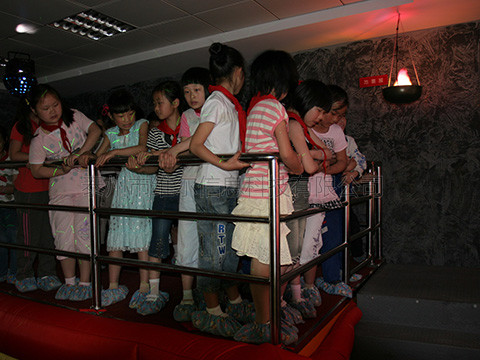 地震體驗平臺能夠模擬有感地震、中強震、強震; 六自由度地震模擬平臺、六自由度地震體驗平臺 一、產(chǎn)品選型 二、技術(shù)參數(shù)(平臺) 三、功能簡介 六自由度地震體驗平臺采用六軸運動控制系統(tǒng),適用于地震科普場館、科技館、游樂場所使用,體驗地震的感覺,體現(xiàn)地震時地面劇烈抖動、波動縱波、橫波,加之視景、音響、特效的有機配合,讓人身臨其境。更進一步了解地震的相關(guān)知識,達到一定的科普效果,提高人們的防震減災意識。 地震體驗平臺模擬地震災害的多個震級的變化效果為主線,突出展示人類認識自然、揭示自然,提高人們對地震的認識,加以防范,在地震來臨時能采取自救措施。 平臺采用鋼結(jié)構(gòu)框架和仿真平臺技術(shù)相結(jié)合,結(jié)構(gòu)緊湊、模擬環(huán)境形象逼真、運行可靠。內(nèi)設音響系統(tǒng),隨著地震等級的變化,產(chǎn)生不同的地震音響效果,語音系統(tǒng)也相應介紹不同的地震知識。 四、配置清單 體驗臺、平臺護欄、復合地板、臺階、閃電燈、煙霧器、控制主機、投影幕(200寸)、音響、控制箱、液壓系統(tǒng)等 五、效果圖 六、現(xiàn)場圖 體驗平臺 體驗小屋 型號 尺寸 乘員 型號 尺寸 乘員 TYPT-01 2.0m*1.5m 4人 TYXW-01 2.2m*3.0m 8人 TYPT-02 2.0m*2.0m 5人 TYXW-02 2.5m*4.0m 10人 TYPT-03 2.2m*3.0m 8人 TYXW-03 3.0m*5.0m 12人 TYPT-04 3.0m*5.0m 20人 TYXW-04 4.0m*5.0m 15人 TYPT-05 4.0m*5.0m 25人 高度 平臺距地面高度參考尺寸600mm~750mm 名 稱 參數(shù) 名稱 參數(shù) 運動形式 橫波,縱波,震動 電源電壓 380 V 最大承載 定員5~30人 控制電壓 24 V 泵站工作壓力 4~5MPa 設備總功率 8KW 油箱容積 120L 液壓介質(zhì) 抗磨液壓油L-HM46 演出程序 計算機自動控制 設備自重 1.5T