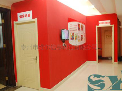 這是個(gè)讓演練者體驗(yàn)如何從火災(zāi)中正確逃生的系統(tǒng)。這個(gè)系統(tǒng)可以告訴演練者在火災(zāi)時(shí)應(yīng)該如何選擇正確的路線,按照正確的方法進(jìn)行逃生,尤其要告訴演練者的是,在有煙霧的環(huán)境中逃生時(shí),一定要用濕毛巾或其它紡織物捂住口鼻并盡量蹲著走,否則會(huì)大量吸入煙造成窒息。 體驗(yàn)者進(jìn)入展區(qū)后,由控制系統(tǒng)會(huì)自動(dòng)控制燈光熄滅,周圍墻壁上出現(xiàn)火苗,音響播放火的音效,將體驗(yàn)者置入模擬火災(zāi)現(xiàn)場(chǎng),2秒鐘后,進(jìn)入模擬疏散出口上方的安全出口標(biāo)志燈亮,體驗(yàn)者開始進(jìn)入模擬火災(zāi)煙霧逃生。疏散通道區(qū)設(shè)有自動(dòng)發(fā)排煙裝置,在逃生通道設(shè)置足夠數(shù)量的疏散指示標(biāo)志,并且設(shè)置一扇假電梯門,體驗(yàn)過(guò)程中,體驗(yàn)者在煙霧區(qū)沒(méi)有按要求彎腰前進(jìn),超過(guò)規(guī)定高度,或者觸動(dòng)電梯按鈕,最后有電腦評(píng)判逃生成功與否。