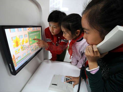 用戶通過與一體機相連的電話機撥號119,顯示屏上顯示進入報警系統(tǒng)。無人操作情況下,系統(tǒng)自動播放一段火災視頻,當體驗者拿起電話,正確輸入“119”電話。在兩聲“嘟...嘟....”的接通音后,系統(tǒng)內的接警員語音提示"你好,119指揮中心,請問哪里失火?",顯示屏顯示提示答案,如“新街口國貿大廈”(此套系統(tǒng)采用語音識別系統(tǒng),回答內容要嚴格按照文字提示答案,聲音要洪亮、清晰,速度不宜過快),共有6輪回答,如果體驗者操作全部正確,完成語音回答后,顯示報警成功并顯示出警視頻。希望通過這個系統(tǒng)能讓學員學會報警.