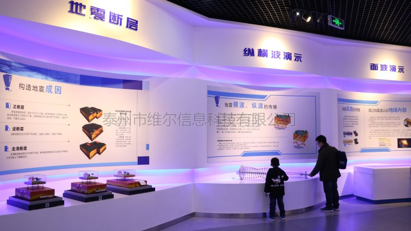 本科普教育基地共分為序廳、地震知識展區(qū)、防震減災(zāi)展區(qū)、互動體驗展區(qū)及尾廳五個功能展區(qū)。